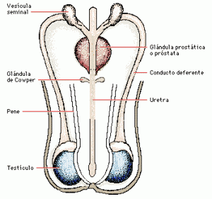 Los conductos deferentes (veamos el dibujo), se ecargan de transportar los espermatozoides desde los testículos hacia las vesículas seminales. Al seccionarlos, evitamos la concepción.