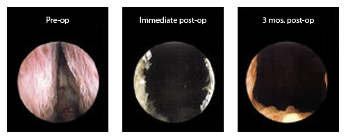 Los resultados se mantienen en el tiempo. Como vemos en las fotos superiores, se aprecia la próstata ¨cerrando¨la salida de la orina, y posteriormente una foto de la cirugía y el control a tres meses donde se manienen los resultados