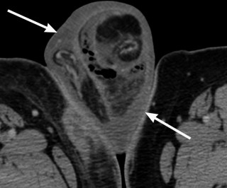 En los primeros estadios, se pueden presentar mínimas manifestaciones cutáneas de la infección. Se debe de reconocer la presencia de una enfermedad sistémica de base como predisponente a la gangrena de Fournier.