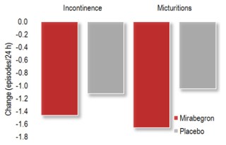 Además de los fármacos anticolinérgicos, el mirabegron alpha3, bloqueador de los receptores adrenérgicos también se proporciona una mejora significativa en la incontinencia y la frecuencia en los pacientes con vejiga hiperactiva, los beneficios marcados en los resultados informados por los pacientes se traduce en una mejor percepción de la salud, de la mejoría en la satisfacción, síntoma de molestia y la calidad de vida del paciente.