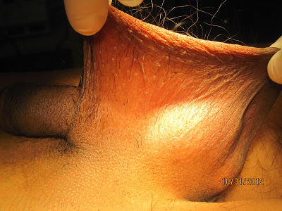 En algunos casos la piel escrotal se hipertrofia (crece), pudiendo ocasionar síntomas como aumento de sensibilidad, sensación de hormigueo, incomodidad para sentarse, y dolor testicular. Es en estos casos que se puede recurrir a la cirugía plástica escrotal, conocida como lifting escrotal.