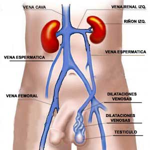Se produce por un reflujo o descenso de la sangre desde la vena renal al testículo y esto ocasiona una dilatación varicosa de las venas testiculares y secundariamente una lesión de la función de los testículos.