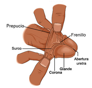 - Mantiene el prepucio en su posición, es decir cubriendo el glande.