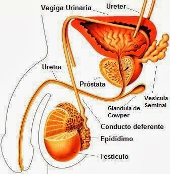 Los genitales masculinos están compuestos por el escroto (la bolsa escrotal), los testículos en número par, los epidídimos, los conductos deferentes, la próstata, las vesículas seminales y por último la uretra.