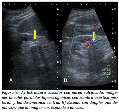 Características de los cálculos en la ecografía.