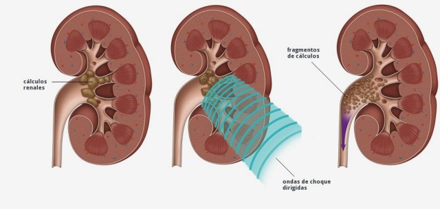 El cálculo absorbe la energía de las ondas de choque y esto hace que se rompa en trozos más pequeños. Entonces los fragmentos del cálculo se eliminan con la orina
