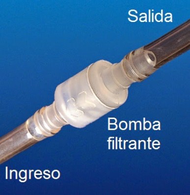 Ingreso de líquido (sangre) ———->Bomba filtrante ———-> Salida de líquido (sangre)