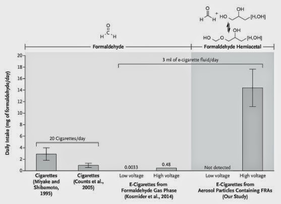 Esta sustancia, que también se emite en los cigarrillos convencionales, tiene una concentración 15 veces mas alta en los cigarrillos electrónicos, por lo que los investigadores desaconsejan su uso.