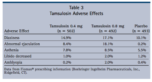 · Minina astenia, mareo o disfunción Eyaculatoria comparado con los otros alfa Bloqueantes.
