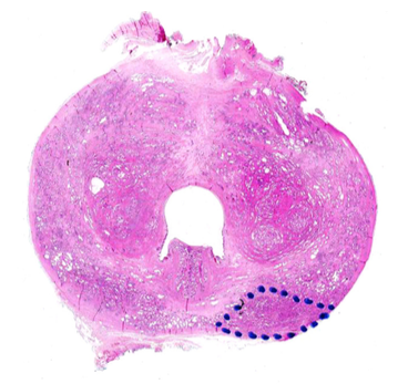Whole-mount section of a low-volume but significant prostate cancer in the peripheral zone
