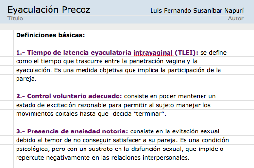 | Eyaculación Precoz. Definiciones básicas. |