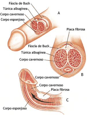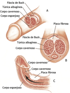 Debido a la presencia de la placa, el cuerpo cavernoso subyacente a la lesión no es capaz de alargarse por completo durante la erección, lo que resulta en la curvatura del pene. La curvatura del pene además, puede estar asociada a flacidez distal o a un pene inestable (debido a la fibrosis cavernosa).