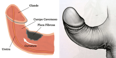 Se caracteriza por la incurvación en el eje del pene, que se puede manifestar con dolor asociado con la erección o durante el coito e incluso en los casos de más severos, imposibilitar la penetración vaginal satisfactoria.