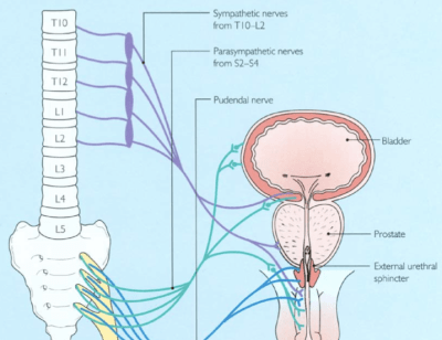 Lesion L3 – S5. Si la lesión involucra los segmentos lumbosacros (L3-S5), pueden existir erecciones inducidas por fibras generadoras de erección del nervio hipogástico cuando existe lesión del centro parasimpático sacro (o de sus vías) hacia el plexo pélvico. Esto ocurre como un mecanismo compensatorio anatómico como nueva vía erectogénica, aunque las erecciones serán de menor rigidez y en general más difíciles de mantener.