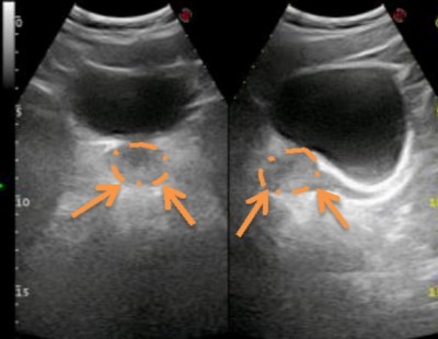 La vía suprapúbica se ha mostrado eser tan fiable como la transrectal para la determinación del volumen, con la ventaja de ser menos laboriosa, mejor tolerada y tener una amplia difusión.
