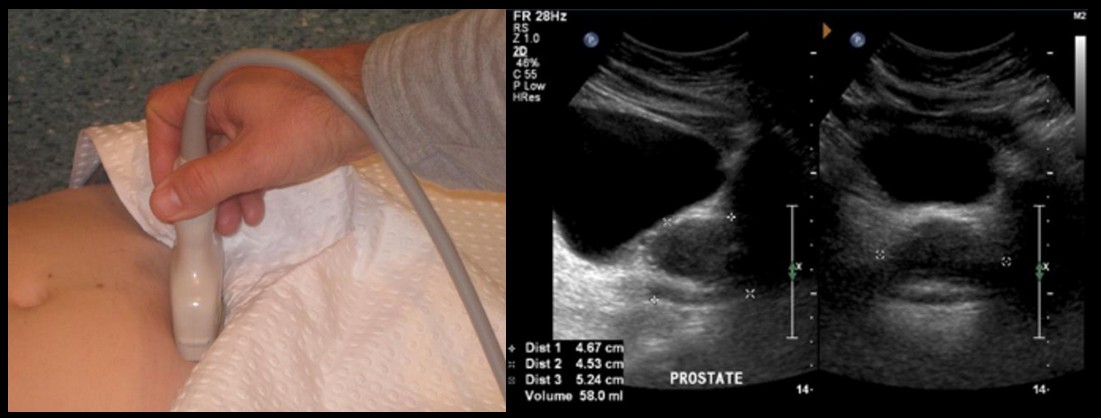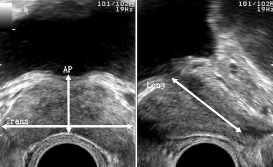 La vía suprapúbica se ha mostrado eser tan fiable como la transrectal para la determinación del volumen, con la ventaja de ser menos laboriosa, mejor tolerada y tener una amplia difusión.