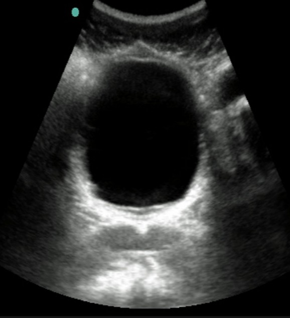 - Engrosamiento del músculo de la vejiga (músculo detrusor) que puede verse tan grueso como 2 cm.