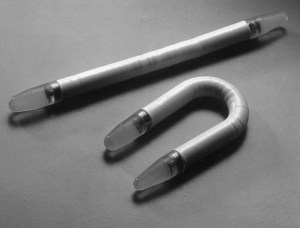 Las prótesis maleables o semirrígidas (dibujo de abajo) son de diversos materiales, los hay de de caucho, de silicona pura, con un núcleo de metal entrelazado central o en espiral y de politetrafluoroetileno (PFTE) recubierto con anillos entrelazados polisulfona conectadas por un resorte.