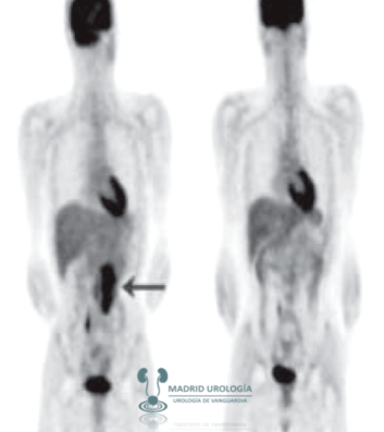 § Se recomienda en el seguimiento de pacientes con TCG Seminomatoso con masa residual tras 6 semanas de tratamiento con Quimioterapia para decidir Vigilancia Activa o Tratamiento Activo. (Re Estadiaje)