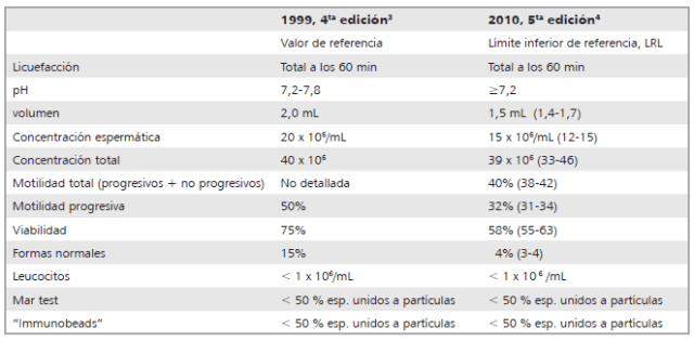 | Valores normales de Espermiograma según la OMS 2010. |