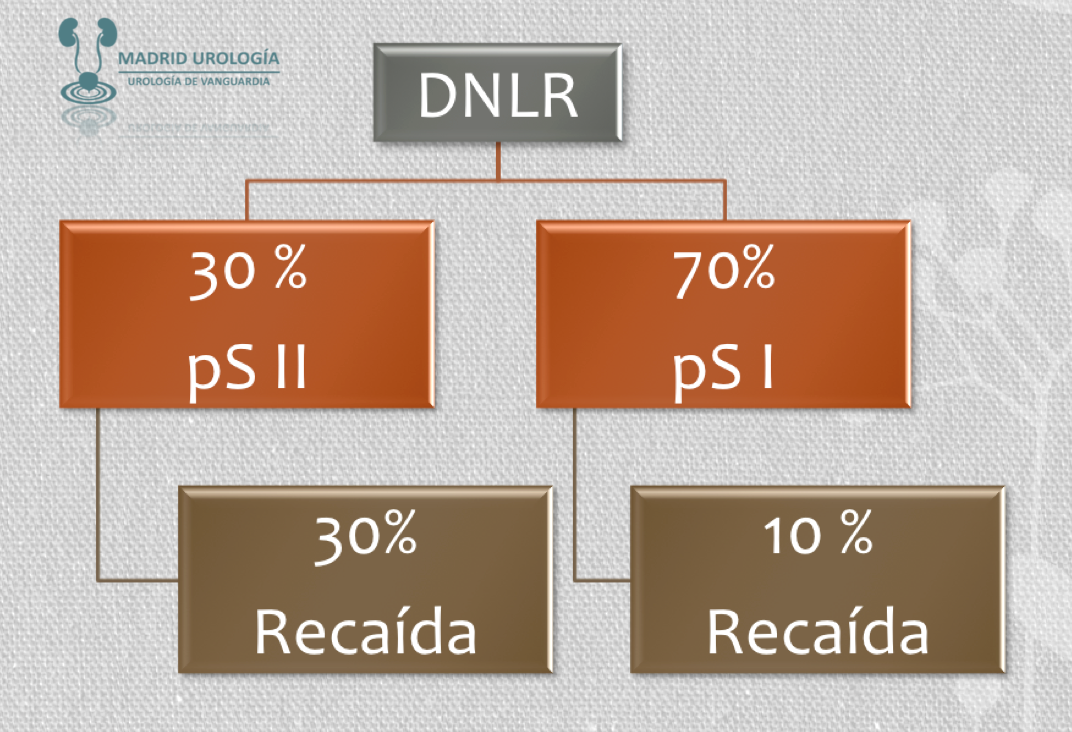 Para pacientes sometidos a DNLR con pEII el tratamiento Coadyuvante con 2 (o más) ciclos de QT basada en Cisplatino disminuye las tasas de recaída en menos del 2 %.