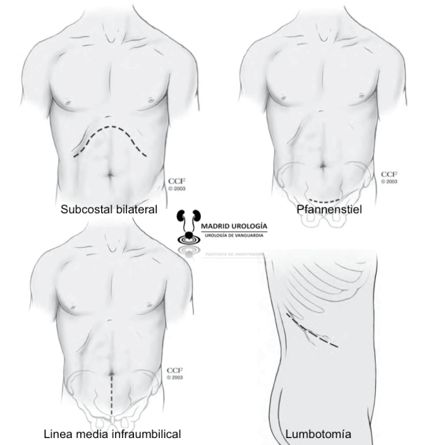 La siguiente tabla muestra algunos ejemplos de técnicas mínimamente invasivas en la práctica Urológica.