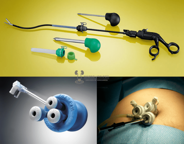 | Dos tipos de puerto único para abordaje laparoscópico. Nótese que un espacio ínfimo se puede acceder con la cámara y con el instrumental de trabajo. |