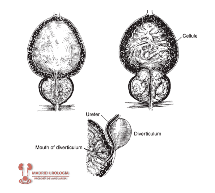 Histológicamente, las células musculares lisas se agrandan y existe un aumento de tejido conjuntivo (colágeno y elastina) entre los haces de músculo lisas. En algunos casos, esto puede dar lugar a un fallo en la compliance vesical con el desarrollo de presiones vesicales e intrarrenales altas. Las consecuencias de esta hiperpresión afecta toda la vía urinaria pudiendo manifestarse en casos extremos con dilatación de la vía urinaria y deterioro de la función renal; incluso con insuficiencia crónica en casos evolucionados. (retención crónica urinaria de alta presión)