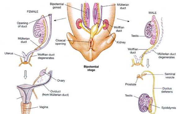 En el tercer mes del desarrollo las gónadas han descendido, siempre retroperitoneales o subperitoneales, hasta el piso pelviano.