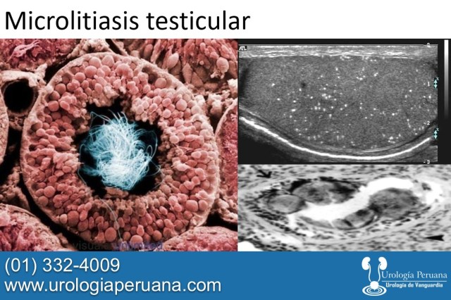 La microlitiasis testicular (MT) es una entidad poco común, caracterizada por la presencia de calcificaciones en los túbulos seminíferos, lugar donde se producen los espermatozoides y la hormona testosterona. Esta enfermedad ha sido reportada en todas las edades y su evolución natural, entiéndase como su desarrollo a lo largo del tiempo de vida de la persona, no ha sido bien definida hasta la fecha.