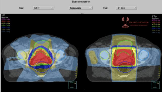 En general podemos decir que el uso de la radioterapia intraprostatica y post quirúrgica puede aumentar el número complicaciones debido al compromiso del campo, de la suturas y las asas intestinales utilizadas en las veo vejigas.