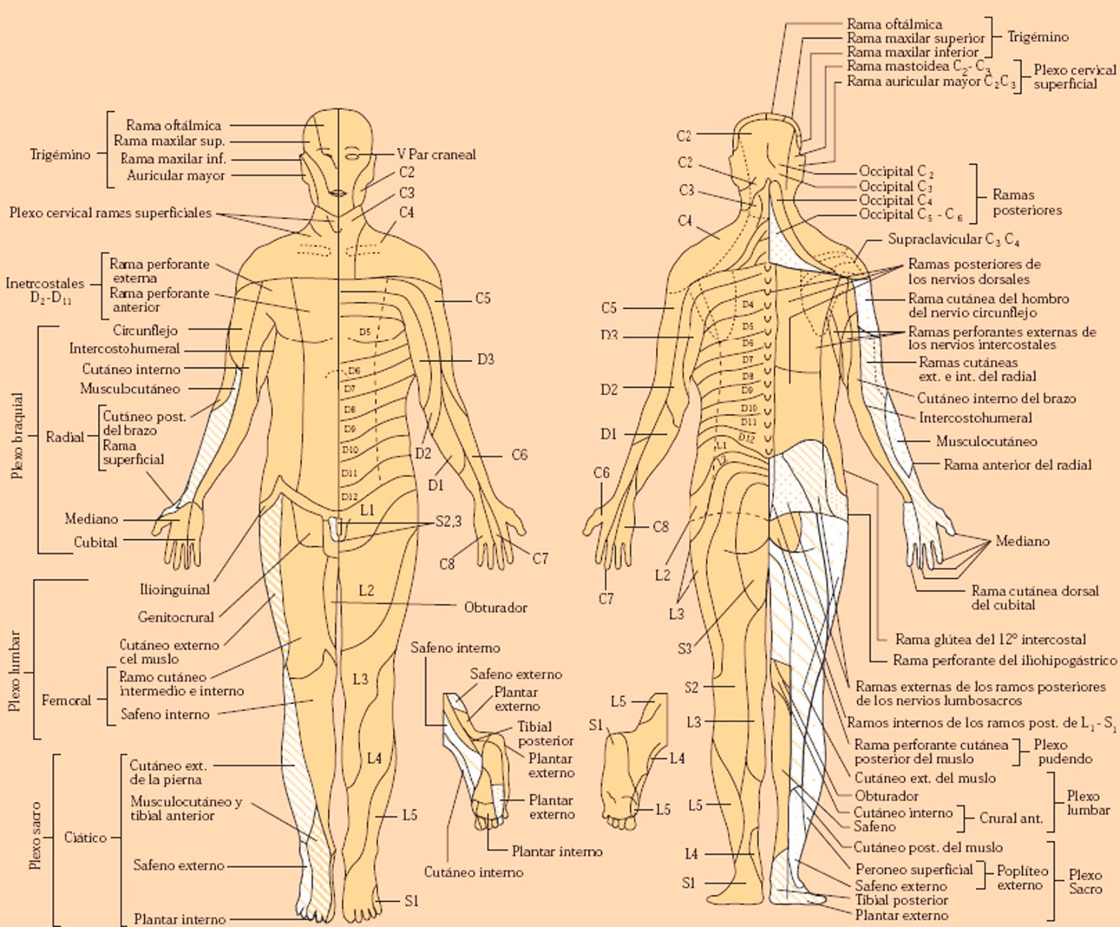 2.S2. Está representada básicamente en la cara posterior de la pantorrilla y muslos, alcanzando hasta los glúteos.