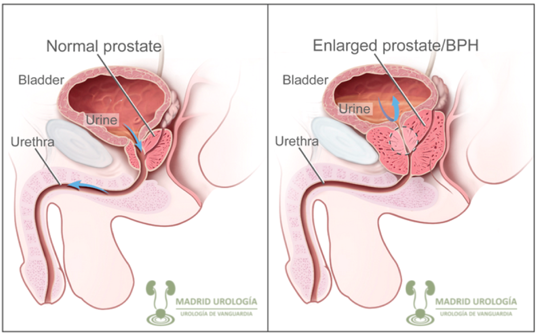 | Hiperplasia Benigna de la Próstata produciendo Obstrucción a la salida de la vejiga. |
