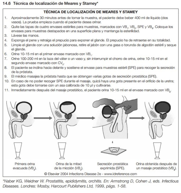 El objetivo de esta técnica de cultivo descrita por Meares y Stamey en 1968 era determinar si la bacteriuria se originaba en la uretra, la próstata o la vejiga.