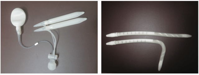 | Izquierda: prótesis de 3 componentes. Derecha: Prótesis maleable. |