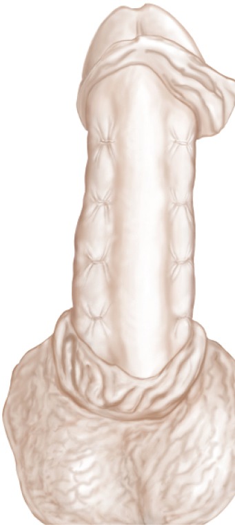 La distancia entre los nudos de sutura en el procedimiento de 16 puntos puede ser de hasta 1,5 cm, pero se puede minimizar. Por lo tanto, los autores proponen reducir la distancia máxima a 5 mm, lo que también significa que habrá más plicatura en lugar de una mayor distancia entre puntos. Esto nos ha ayudado a reducir la extensión del acortamiento del pene. Como beneficio adicional, no se detectan casos de parestesia del pene, especialmente en el glande, debido al retorcimiento de las fibras nerviosas en pacientes con curvaturas ventrales.