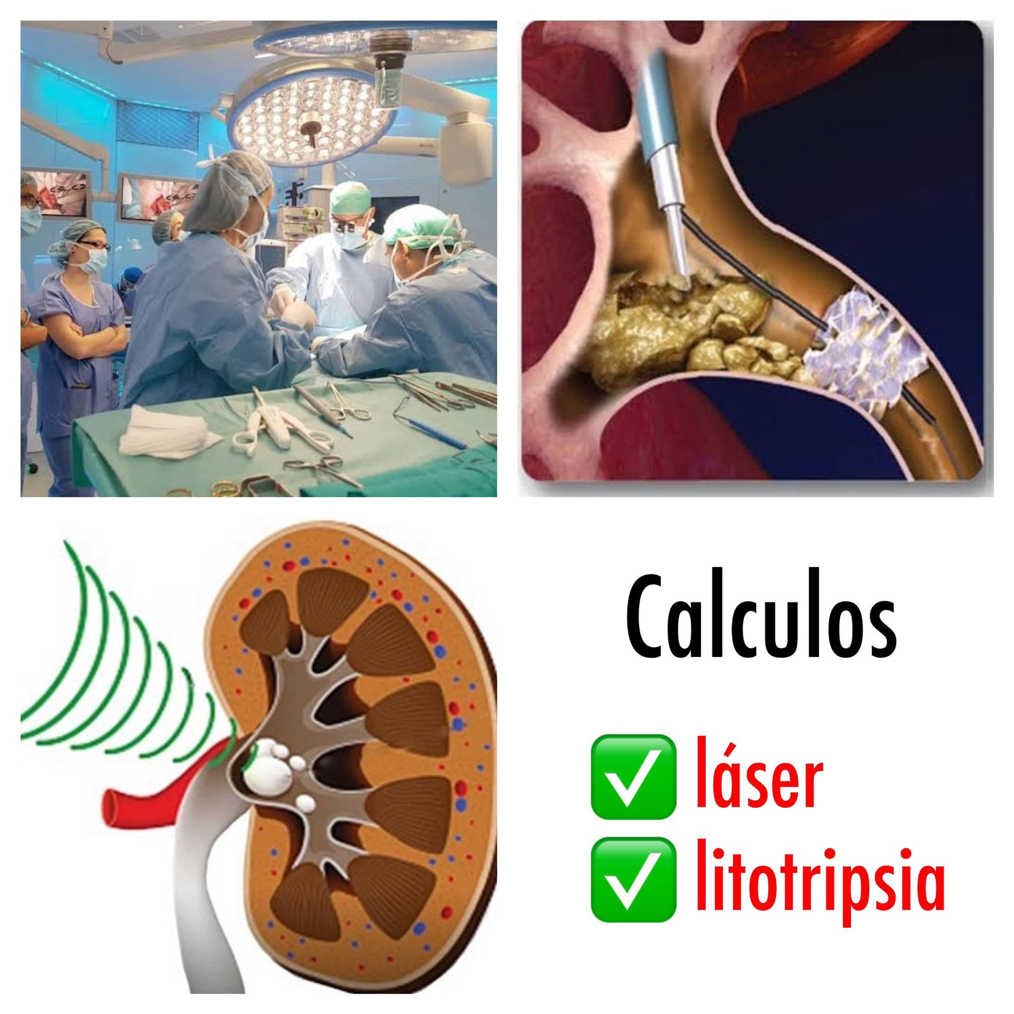 El tratamiento de la litiasis urinaria, conocida también como litiasis puede realizarse mediante cirugía láser o litotripsia, la decisión del tipo de tratamiento depende del médico quien lo recomendara luego del examen de tomografía.