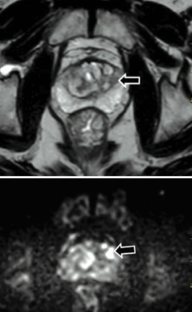 El examen nos permite también identificar zonas inflamatorias que podrían confundirse con focos de cáncer, con la característica de tener valores bajos de parámetro DWI. La facilidad de obtener imágenes contrastadas permite localizar zonas de mas alta chance tumoral, con mayor sospecha de celularidad y sobre todo con pronósticos de gleason más altos dependiendo la imagen obtenida en la resonancia biparamétrica.