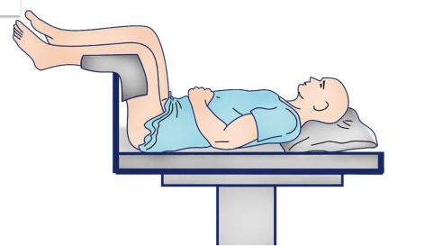 La prueba también se puede realizar en posición de Litotomía («ginecológica) siendo más común con los cistoscopios rígidos.