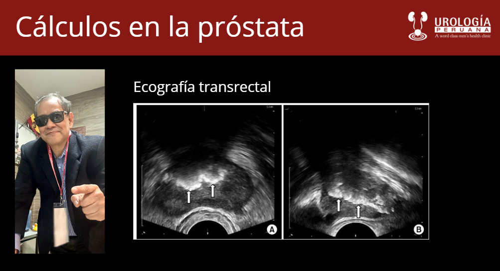 - Ecografía transrectal: útil para evaluar cálculos en el contexto de prostatitis crónica y correlacionarlos con síntomas urinarios.
