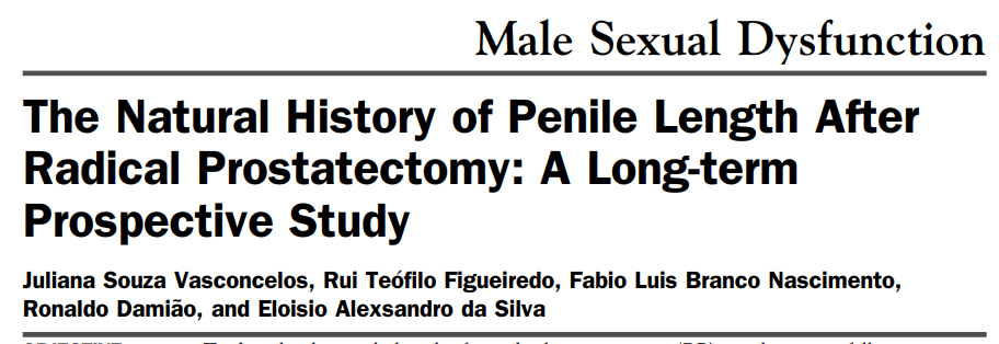 - Vasconcelos JS, Figueiredo RT, Nascimento FL, Damião R, da Silva EA. The natural history of penile length after radical prostatectomy: a long-term prospective study. Urology. 2012 Dec;80(6):1293-6. doi: 10.1016/j.urology.2012.07.060. Epub 2012 Oct 23. PMID: 23102441.