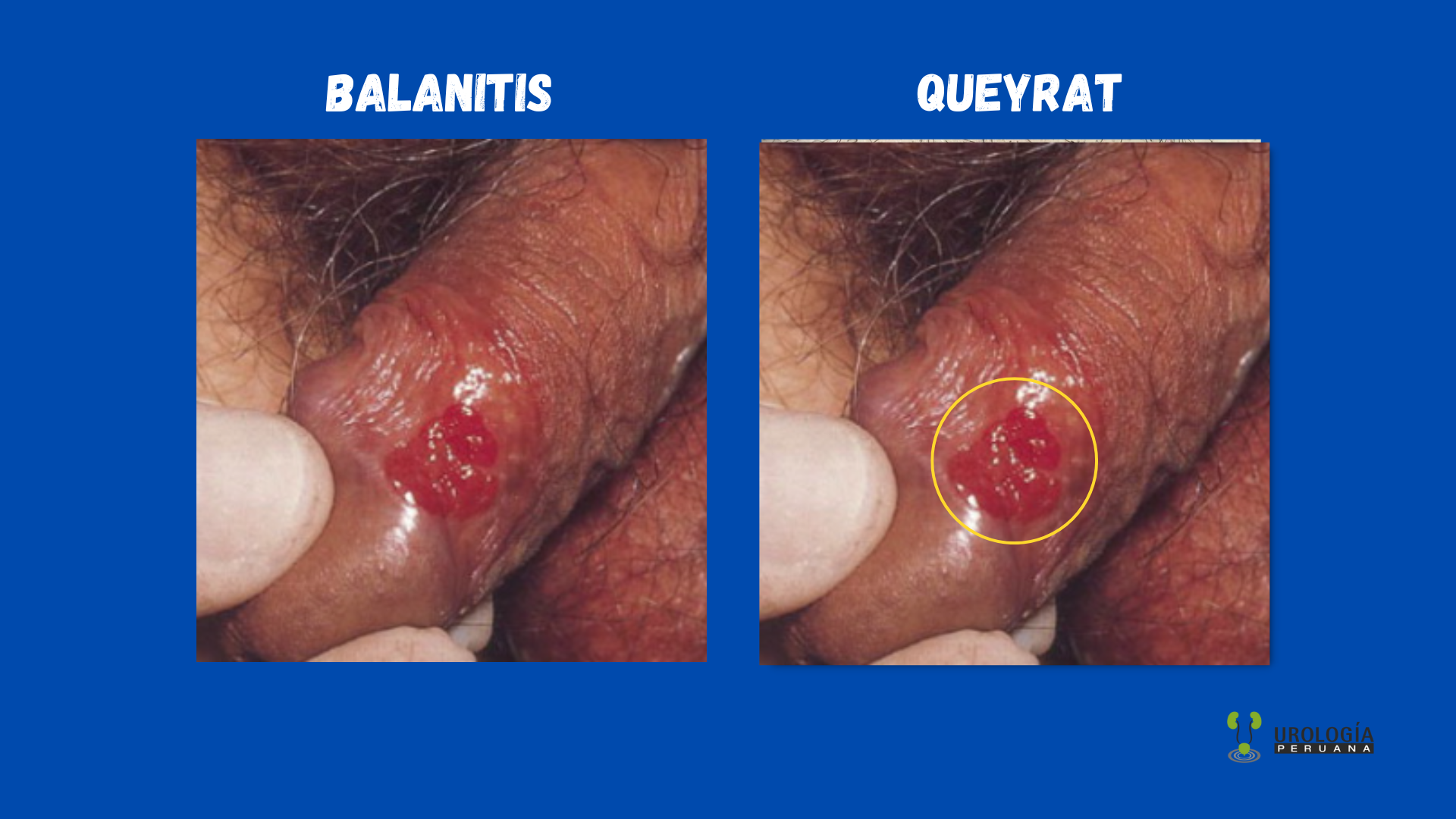 bALANITIS DE qUEYRAT. Es una forma de carcinoma in situ del pene que afecta principalmente el glande. Se presenta como una placa roja, bien delimitada y persistente, con potencial de progresar a cáncer invasivo si no se trata.