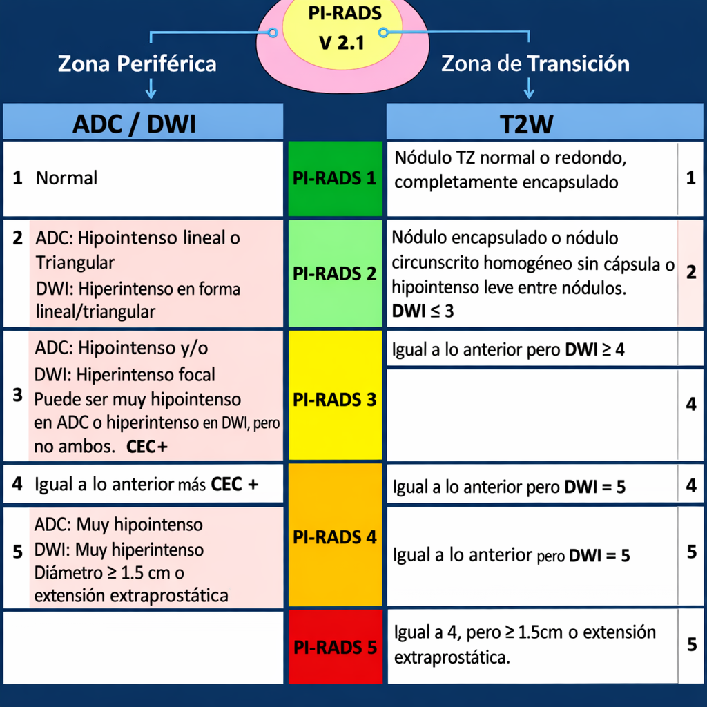El análisis de estas variables permite estratificar mejor el riesgo, mejorando la discriminación entre lesiones benignas y cáncer clínicamente significativo, superando en algunos escenarios el rendimiento de la evaluación PI-RADS convencional.