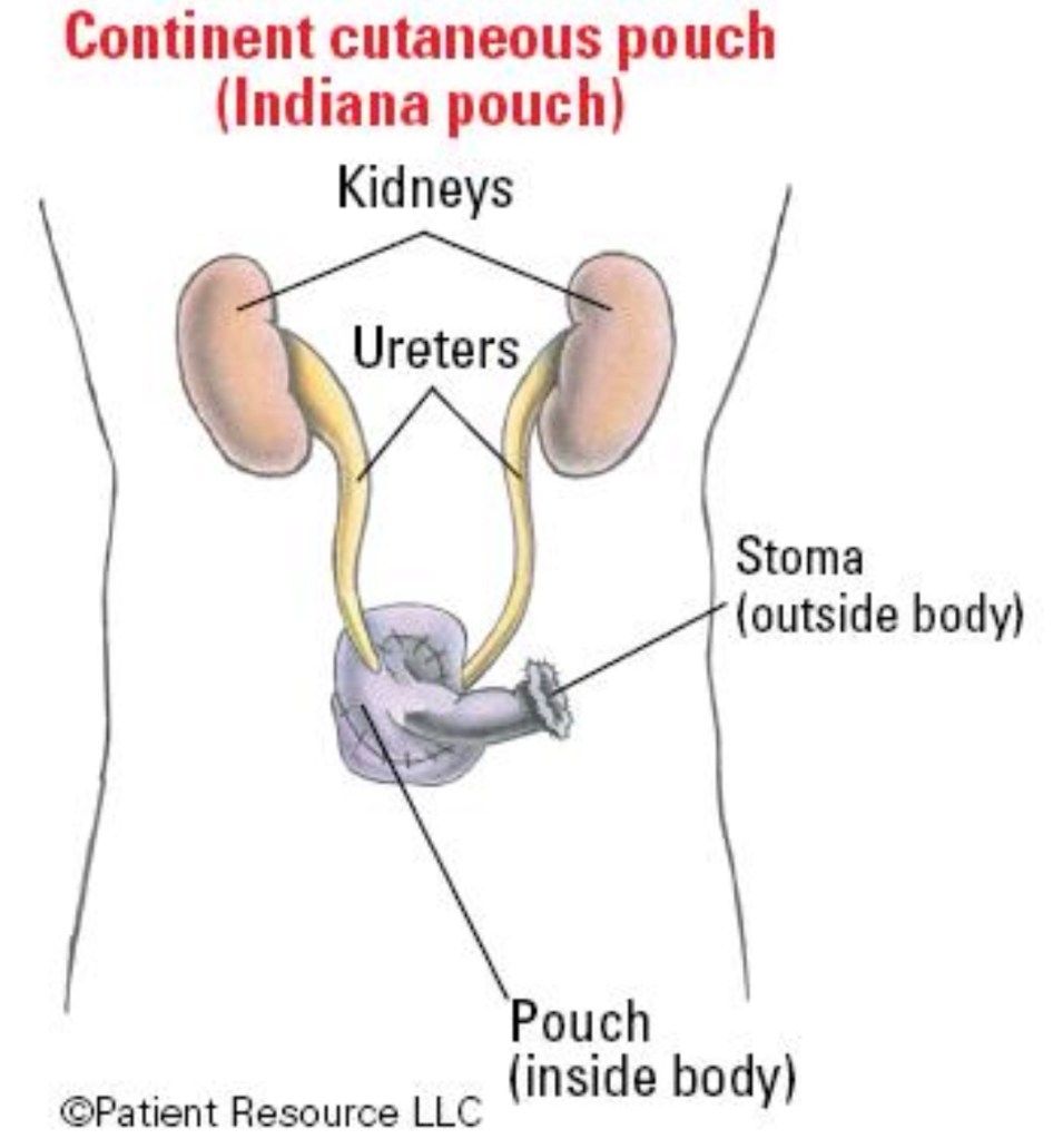 Se construye un reservorio con intestino (habitualmente íleon) que se conecta a la uretra. Un ejemplo clásico es la técnica de Studer.