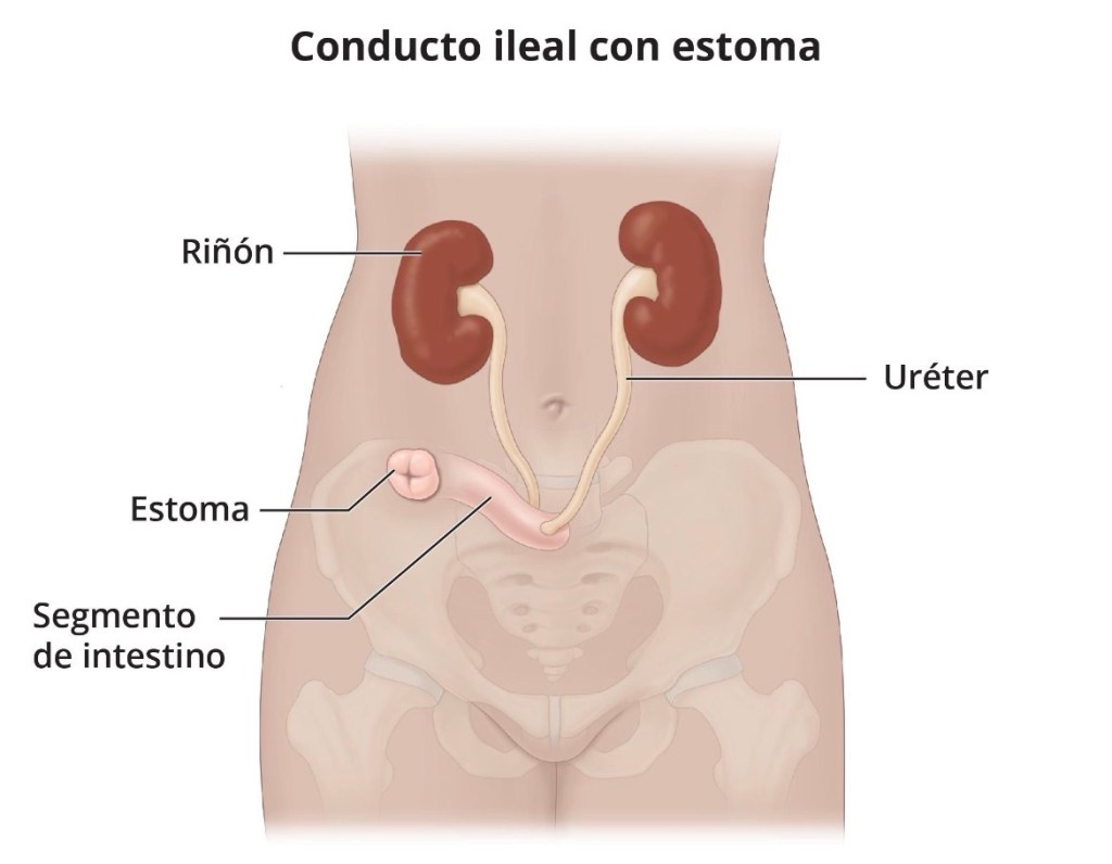 Consiste en utilizar un segmento de íleon aislado al que se conectan los uréteres. Este segmento se exterioriza a través de la piel formando una urostomía, por donde la orina drena de forma continua hacia una bolsa colectora.